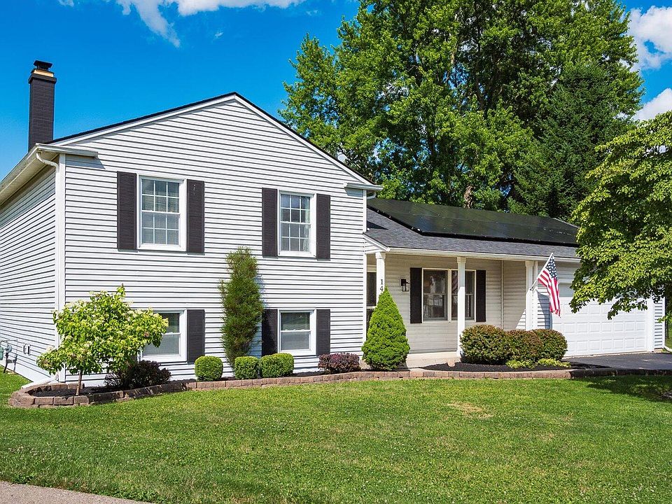 Experience this beautifully landscaped, Fully Refreshed 3-level split on a cul-de-sac with NEW Roof, new flooring, light fixtures and Fresh paint throughout, a recently remodeled kitchen w/granite countertops and island w/butcherblock counter! (Kitchen island is currently in use as a beverage counter and can be relocated to center of kitchen.) The Family room's floor to ceiling stone fireplace is highlighted by a reclaimed barn beam mantle. The fenced yard boasts a new pergola, stone patio and path to firepit and entertainment area. The home features New Solar panels 2024 ensuring no electric bill, and a freshly sealed driveway. Welcome Home! (Agents: See A2A remarks for $2,500 lender credit towards Buyers closing costs.)