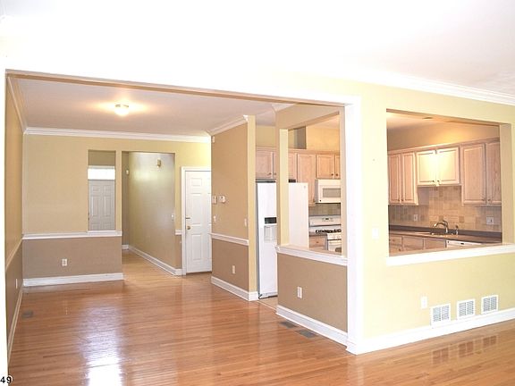 Perfect location with privacy & Convenience. Great floor Plan offering open Concept & 9 Ft ceilings on First level - 2 Huge Bedrooms with En suite baths & Walk in Closets. Kitchen with vented hood, tile backsplash & Corian counters - Hardwood floors - House is being painted - New carpets for second level before Occupancy - crown moldings - sliders to deck overlooking private wooded yard. Finished basement for Rec or media room - 1 car garage & Driveway parking. Snow removal not incl in maintenance only landscaping. Tenant responsible for first $ 100 in repairs per occurrence.