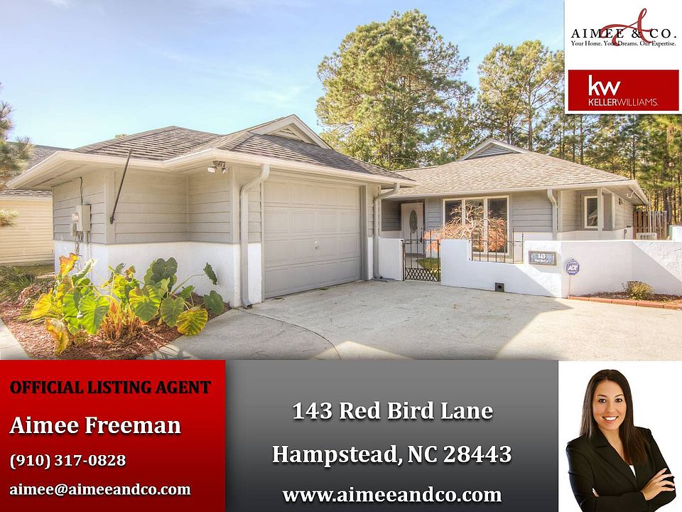 This 1500 square foot single family home has 3 bedrooms and 2.0 bathrooms. This home is located at 143 Red Bird Ln, Hampstead, NC 28443.