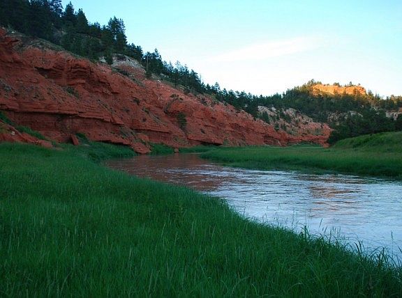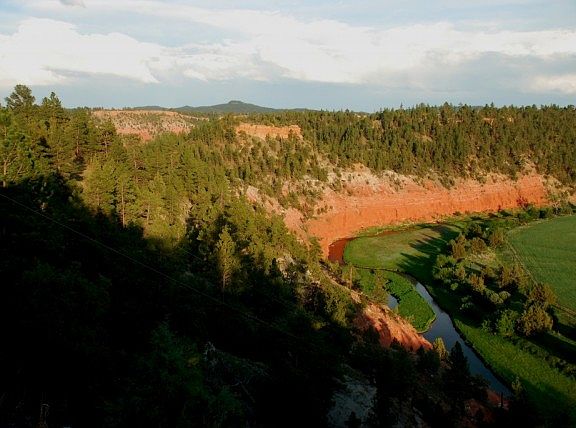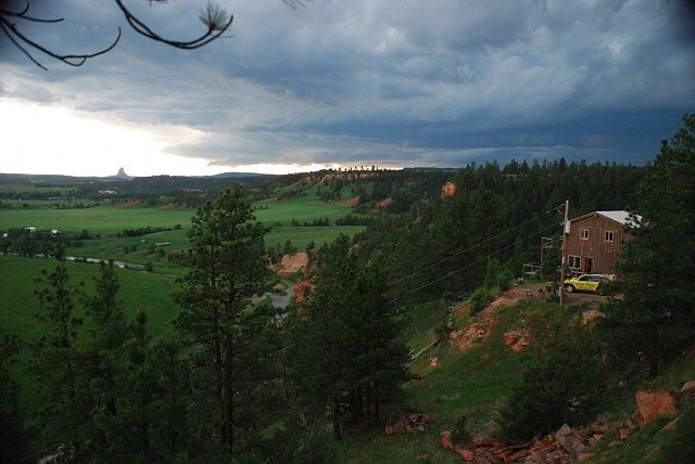 The Roost. 75 ACRES MOL. Rim rock, Belle Fourche river, views of the Devils Tower & Valley, meadows, timber EVERY WINDOW. Under 5 miles TO town, yet total privacy/isolation. Vaulted, has a full height petrified wood fireplace, rustic pine flooring. Vessel bath sink in antique washstand. Claw foot tub. NO SUBDIVISION, NO CCR'S. LIVE FREE! $450,000.00