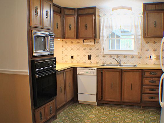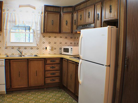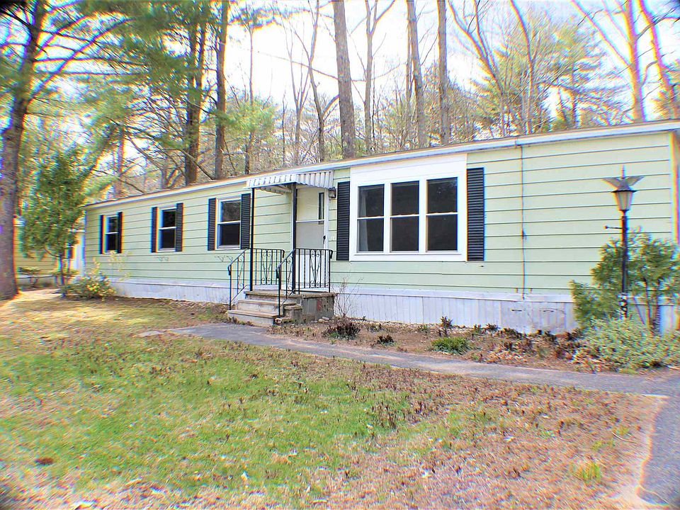 BACK ON MARKET due to buyer not approved by Park! Large and spacious Double Wide 8 room/3 bedroom/ 2 Full bath Home, 1344 sq.ft. plus a Large Sun Room that overlooks private back yard with views of woods and nature! The Home is full of natural light, gets sun most of the day. Master bedroom suite with walk in closet, large bathroom with soaking tub, and separate, private "throne room"! 2 bedrooms each with large closets. There are 2 separate rooms off Kitchen, one can be your dining room, the other could be an office, den, craft room or whatever you desire. Large Shed for outdoor storage included. Painting the paneling & Kitchen cabinets would update and transform this home! Parking for 4 cars! Sale is to settle an Estate, property sold as seen, as is. AGE RESTRICTED: One person must be 55 or over and no one under 45 can live in the park. Cats and dogs allowed, breed and weight restrictions on dogs. SHOWINGS: call or text agent for instructions