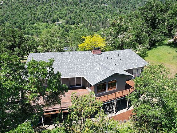 Spacious ridge-top home nestled amidst the trees with excellent views of the Umpqua Valley and Umpqua River. The home has three bedrooms on the main floor, two in the basement along with an additional flex space, formal dining room with views and a living room with large bay windows. The large deck has great views and is a nice place to relax while the covered front porch provides great shade for bird watching. The home has been updated with new flooring, trim, countertops, roof, heat pump, decking and more within the last two years. There is potential for multi-generational living. The home is located in the desirable Melrose neighborhood.