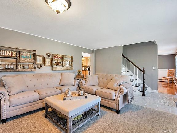 STEP into this Farmhouse Decorated Style Colonial in one of Southington's sought after Neighborhoods! This Beautiful Colonial has everything you are looking for in a home, located on a Cul-de sac and has many updates. The Kitchen has been updated with Hardwood Flooring, Granite countertops and a Large walk-in pantry. It also has a large, eat-in kitchen that is great for entertaining. Sliders bring you to a Private oasis deck that you can enjoy year round and to a Large Backyard with an Above ground Pool! Upstairs you will find a Huge Master bedroom, Full bath and two other good sized bedrooms. You can continue your entertaining in the Finished Basement that has been updated with Concrete flooring and Hardwood floors. This beautiful home is located close to Shopping, Highways and Schools. Make your appointment today because this one will not last! Sellers to find suitable housing. Please use COVID protocol and wear masks when entering & only 2 people at a time. Sellers to find suitable housing.