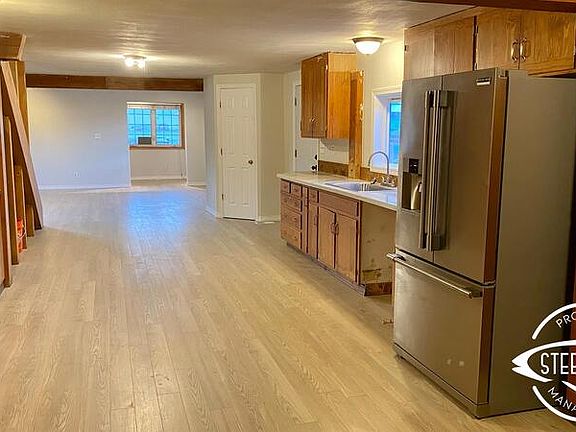 Enjoy this unique lodge style home featuring two bedrooms on the main floor, attached garage, two bedrooms upstairs and a huge kitchen. This home features live edge timber and wooden beams throughout, this home is conveniently located and ready for rent. New furnace and flooring along with other updates, this large home is ready for you. 7 days a week self showing options on this home. Call Steelhead Property Management today. All adults over 18 in the home MUST apply.