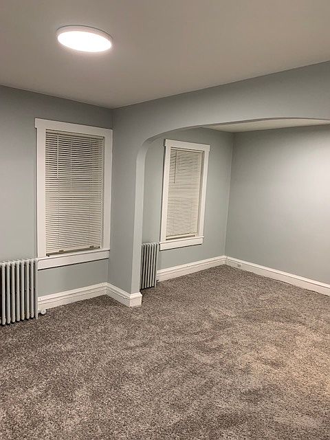 Clean, newly painted, new carpet in bedrooms, small fenced back yard. Will be ready mid to late Feb. Quiet area right off Oak St. Walk to stores and restaurants. No smoking, small dog possible with additional deposit. (will discuss) Owner pays sewer only. Tenant pays water, trash, electric and nat gas. 3rd floor space very large. Renter responsible for all utilities except sewer. Heat is natural gas boiler.