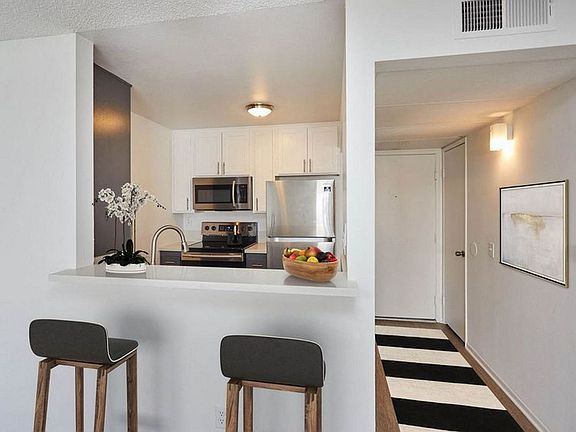 - Exterior features: Balcony, Brushed Nickel Hardware*, Full Kitchen, Quartz Countertops*, Stainless Steel Appliances, Three Social Courtyards, Upgraded Cabinets*, View Type: Hollywood Sign Views, View Type: Skyline Views