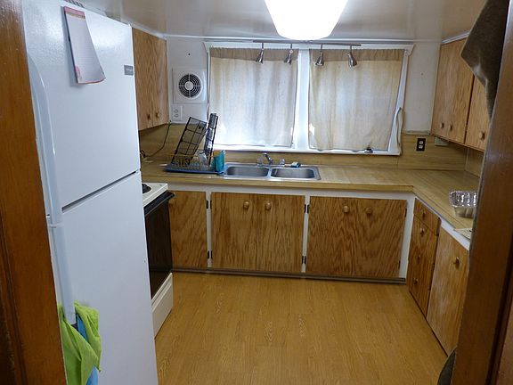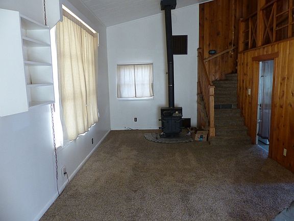 This bungalow has a lot of nice features. Knotty Pine walls, step savor kitchen with dinning room off the living room. Open concept with the loft open to the lower level, oversized laundry room with storage. One bedroom upstairs with the landing big enough for a family room or another bedroom. Metal siding, metal roof and double pane windows for easy care. Storage shed for lawn items and lots of wood storage. Fenced back yard has a big blue spruce and a peach tree.