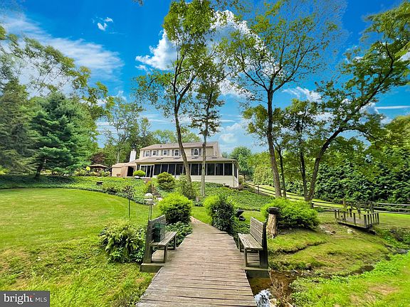 Majestically set on a premium double lot is this enchanting & alluring home offering tons of living space, privacy, and vibrant views of the surrounding nature. This 5-bedroom, 3 bath residence has been lovingly cared for & maintained by its original owner, creating an ideal turn-key residence for families. With an unusual amount of square footage and yard-space for this premier neighborhood, this property features everything you need to entertain & unwind to the fullest potential. This story-book colonial is larger than it appears from the outside, featuring a 2-car garage and an addition off the back that creates a stellar 4-seasons room with skylights, a pellet-stove, dashing views, and a private office/storage/gardening-room space with its entrance. Inside, the kitchen boasts SubZero appliances, granite countertops, charming built-ins, and easy access to the cozy living room space inclusive of a fireplace & 85" TV. Host dinners and events in the private dining room area, and entertain with ease in the home’s formal & bright living room. Additionally, there is a full-bathroom on the main level, laundry facilities, and a private office room that could function as an bedroom/overnight space for in-laws and guests. Upstairs, there are 5 generously-sized bedrooms with walk-in closets and crown molding, as well as a full bathroom in the hall with double sinks. The primary features an en-suite bathroom and closet area. Downstairs, the basement is fully-finished with two separate rooms for additional living space and storage. And finally, the awe-inspiring backyard provides a truly magical landscape to compliment the home’s clean & spacious interiors. With extensive landscaping, a stone patio & walkway, a fairytale-esc bridge covering a quaint stream, and exceptional privacy from neighbors, this backyard is a dreamlike sanctuary year-round. Just minutes from gems like Doylestown Borough, Peace Valley Park, Buckingham’s None Such Farms, Peddlers Village, and tons more, 143 Saddle Drive puts you right in the hub of vibrant amenities, top-rated schools, and dynamic shopping & dining.  Comfortable yet enchanting  living awaits!