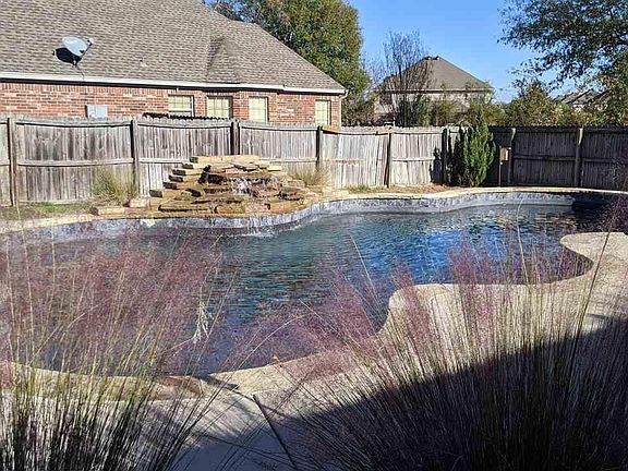 Looking for a backyard oasis with a custom built pool, waterfall & plenty of room for lounging? This could be the backyard you've been looking for. Relax and enjoy the view from the covered patio after a long day at work. Open space with high ceilings, large master with his & hers closets. Spacious kitchen with breakfast bar, two living areas & a formal dining room. Good size laundry room too. Gas FP, Tile throughout the home, no carpet for easy cleaning Check out this lovely 4BR 2BA home on a corner lot.