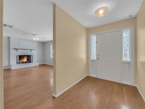 Welcome Home to this charming 3 bed/2 bath 2 story home nestled in the quiet neighborhood of Sandalwood in Longwood. As you enter you will take note that the home has been freshly painted and that the kitchen has wood flooring, real wood cabinets, matching appliances and breakfast bar that opens up to the dinning room with french doors that open to the large covered patio with porcelain tile flooring. The Family room has a wood burning fire place and wood flooring. The upstairs guest bathroom has been fully remodeled with subway tile and glass tile inserts in the shower, new modern vanity, new plumbing fixtures and porcelain tile. All of the bedrooms are upstairs and have laminate flooring leaving the downstairs perfect for entertaining. The Master bathroom has been updated with newer vanity, fixtures and porcelain tile. The backyard is fenced in and ready for afternoon bar-b-q's and will be great for any animal lovers. With lNO HOA and has a park, & basketball court. Close to I-4, Lake Mary and Sun Rail enjoy access to plenty of awesome restaurants and shopping while having the convenience to Downtown Orlando, and Sanford. Please schedule your appointment today this home won't last!