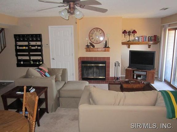 Well maintained 2 bed, 2 bath, 1 car garage condo, overlooking the St Louis skyline. Spacious family room with wood burning fireplace and large windows. Kitchen offers many cabinets & all kitchen appliances stay. Condo association fees include: water, sewer, trash, snow removal & lawn care as well as exterior maintenance. Association fee is $160 monthly. Easy access to shopping & interstate. Before making an offer on any property, buyer should independently verify all MLS data, which is derived from various sources and not warranted as accurate. Call Kim Garbe at (618) 610-1257 for more information.