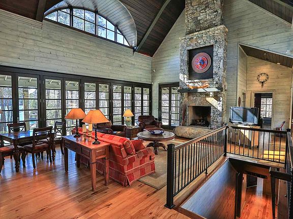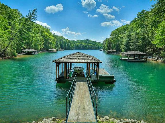 Lake Home extraordinaire located in The Reserve at Lake Keowee. The winding, wooded drive into the property provides an element of excitement to this ultimate lake retreat. At the end of the drive, an architect inspired true LAKE home awaits you. Situated on an impressive 2.98 Acres, with over 475 feet of lakefront, the 4 bedroom (including two bunk rooms), 4 full and 2 half-bath home offers owners an escape from the ordinary. Long, unobstructed lake views and covered dock with boat lift on a deep water cove complete the setting. Vaulted ceilings, eyebrow windows and walls of windows, impressive stone hearth fireplace, turreted bunk loft, copper front door and inlaid hickory and walnut hardwood floors highlight some of the unique features of the home. Enjoy the outdoors on a covered flagstone porch spanning the rear of the home. One end of the porch is anchored by a stone fireplace and the other by steps that lead to the gentle stroll to the water's edge. The main level is comprised of a kitchen, dining, great room combination defined by varied ceiling heights. Shiplap wood siding in diverse paint shades maintains the lake home atmosphere. The hearth at the base of the fireplace is one massive natural boulder! The wood lined cathedral ceiling of the Great Room is balanced by the light emanating from walls of windows. The Master suite is located at one end of the main level and one bunk suite at the other. A two story foyer just inside the copper front door features an open stairway to the secluded guest suite on the upper level. A second, equally open, staircase leads to the lake level where a second bunk room suite, laundry/lake room and additional powder room are located. Acreage like this, on the lake with a gentle slope to the water is difficult to find. The quality of stone on the exterior is exceptional and perfectly complimented by the cedar shake roof with copper roof accents and board and batten siding. The obvious attention to detail makes this a home worth touring.