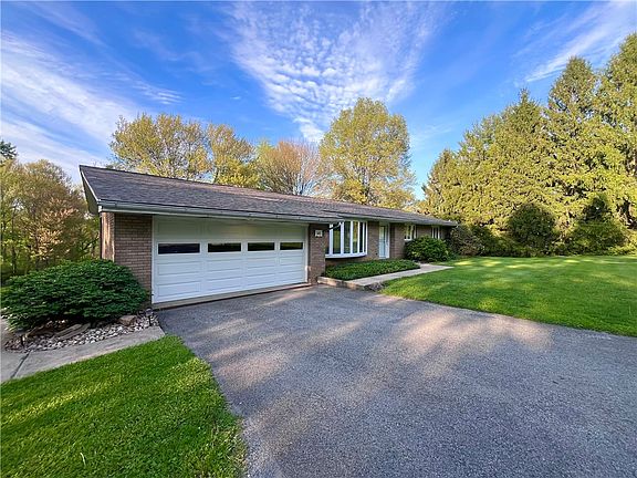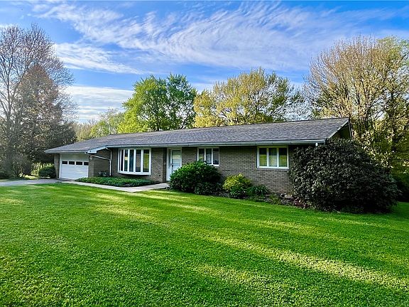 A picturesque park-like property awaits its new owners. The welcoming entryway features a closet and living room bathed in natural light. The stunning kitchen boasts original hardwood cabinets and appliances, with ample space for a large dining room table. Three spacious bedrooms and a generously sized full bath are located on the main floor, showcasing original woodwork and ample closet space. The unfinished basement offers room for customization and the potential to add another bathroom. The walkout access from the basement leads to the beautiful backyard. The property spans three separate lots, totaling over 4 lush acres with wooded areas. A beautiful selection of trees is planted throughout the property. The two-car attached garage provides access to the secluded covered back patio , perfect for that morning cup of tea.