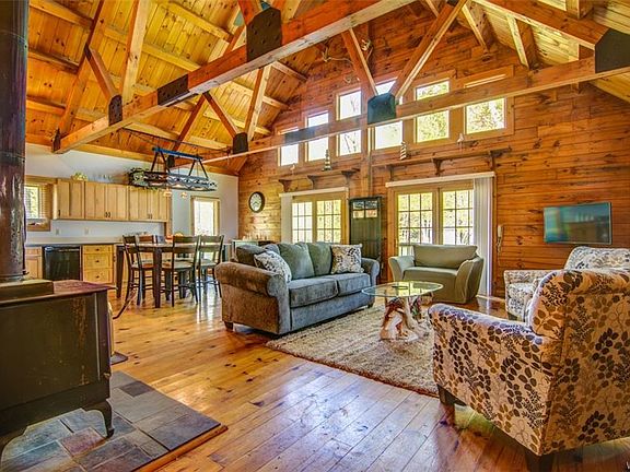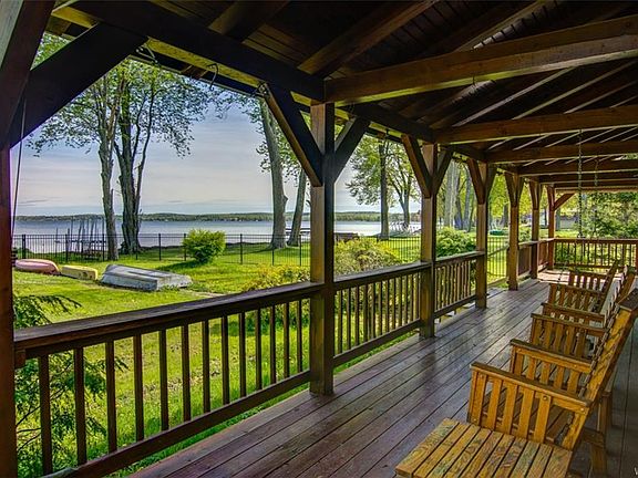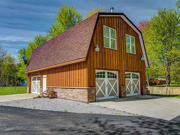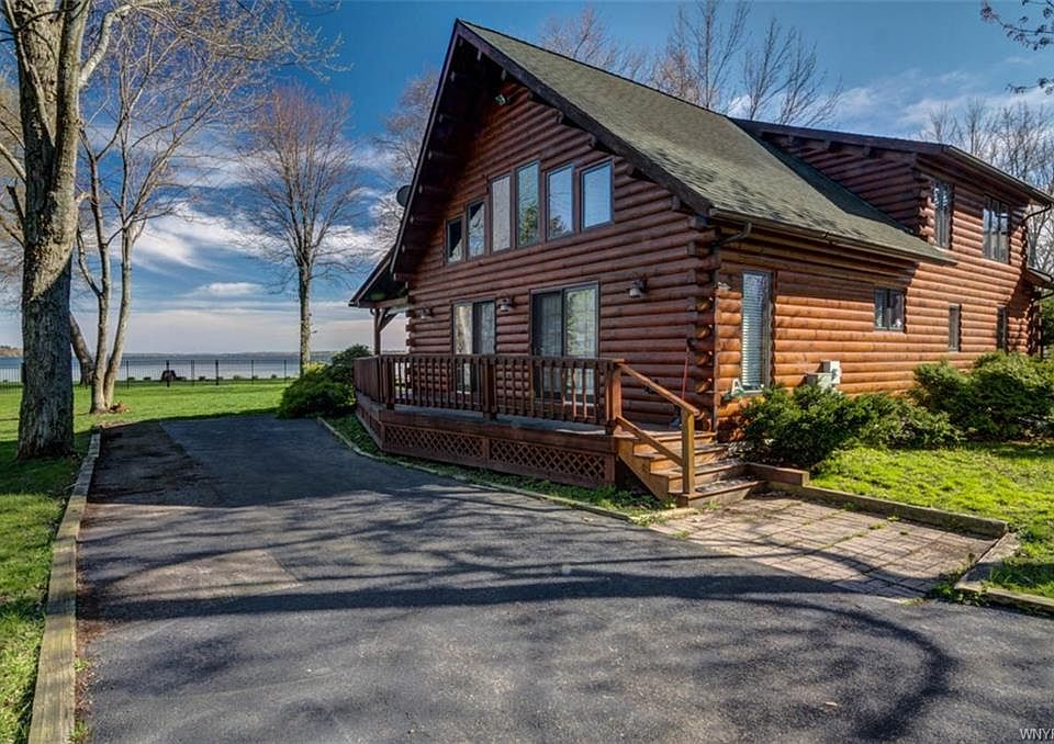 This supremely well built custom log cabin features 1,740 SF of living area in the main home, situated on 1.14 acres of private land. True to form, the interior boasts monolithic wood trusses spanning the open kitchen, dining and living area. The second floor features a full master suite with dedicated full bath, seating area and two balconies: one to admire the outdoors, the second admire the natural woodwork within. Outside, you will find a generously sized wrap-around covered porch facing Chautauqua lake fully equipped with rocking chairs. The property offers a full two story 4 car garage built in 2011, with dedicated half bath (potential shower) and nearly 900 SF of additional "Storage" space for guest or the like. Must read additional features sheet for more!