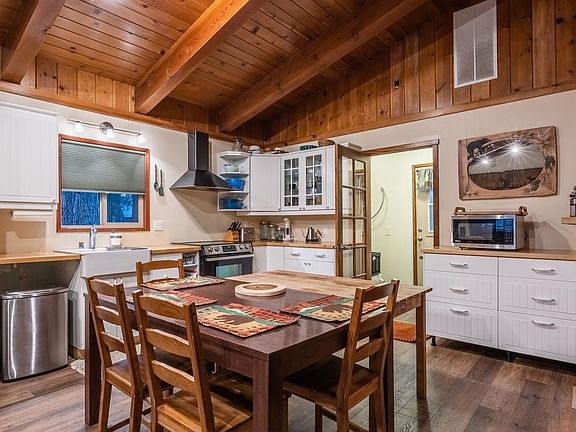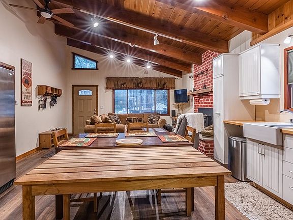 This charming 2 bedroom / 2 bath home is centrally located in a peaceful neighborhood in Mammoth Lakes. Located off of Main Street behind the post office with convenient access to various amenities including a close distance to free town shuttle, restaurants, ski shops, and trails to local parks and forest areas. The single-story layout offers the advantage of convenient living while the heated floor in the primary bath adds a touch of luxury and comfort. The home is well-maintained and move-in ready with many upgrades done by the current owners including brand new plumbing throughout, water main, water heater, central heating, permitted addition of the second bathroom, luxury vinyl floors, and front porch. Additionally, the property includes parking for up to six cars and a detached shed, providing ample space for storing all your seasonal equipment and belongings. This impeccably cared for mountain home offers a combination of convenience, comfort, and charm, making it an ideal place for either full-time or second homeowners. Nightly rentals are not allowed. Be sure and check out the 3D tour for the floor plan.