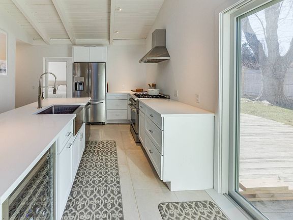 Full renovated 3 bedroom, 2 bath and with tropical pool, outdoor dining, fire pit and hot tub. All with a 4 minute to a private lifeguard beaches and the best sunsets in montauk. On the interior, The open living space is white bright and clean with splashes of color, and includes living room with flat screen tv, gas fireplace, live edge dining table and eat-in kitchen with counter seating and stainless steel appliances including a wine cooler. Sliding glass doors open to the expansive pool area, with a pool bar stationed just outside the kitchen. The ensuite master bedroom has king sized bed, Peleton and luxury walk in rain shower. There are two additional guest bedrooms, both with queen sized beds. A full bathroom is shared between the two guest bedrooms. On the exterior, the backyard is sun drenched with outdoor dining, Two patio, heated salt water pool and a massive outdoor shower. New are a solo stove fire pit with 5 Adirondack chairs and a 6+ person hot-tub. All steps away from private Culloden bay beach at the end of Pinetree and walking distance to the dock area with plenty of restaurants, shopping, and nightlife. Available 2 weeks $25,000