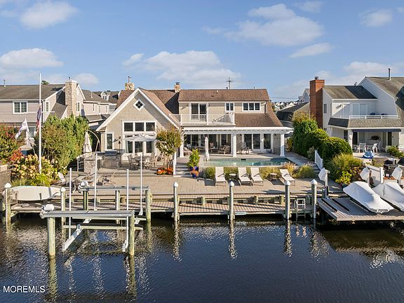 Welcome to Squan Beach Dr. in exclusive Curtis Point. This 4 bed 3/1 bathroom home was meticulously renovated in 2016. The multi-level well-appointed backyard includes Ipe decking, heated saltwater gunite pool, BBQ island with Lynx grill, gas firepit, waverunner / boat lifts, sound system and luscious landscaping w/ decorative lighting. Inside the gourmet kitchen Subzero, Meile and Wolf appliances are surrounded by custom cabinetry and stone countertops. The kitchen flows into a spacious living / dining room w/ wood fireplace. A first-floor primary suite, half bath and laundry room complete this level. Upstairs includes 3 bedrooms, two full bathrooms and a terrace overlooking the lagoon. Reclaimed hardwood floors, built-ins and natural sunlight make this home warm and elegant. Curtis Point amenities include private beach access, tennis and bocce courts (with association membership).
