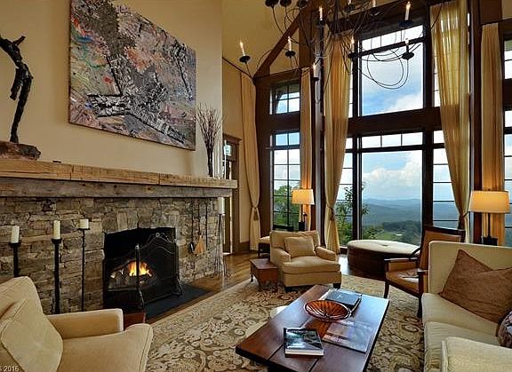 Perched high above the Old Edwards Club, this stately home offers exceptional long range layered mountain views along with a birdseye view of the golf course. The formal living room with a grand stone fireplace and soaring ceilings adjoins the dining room, the wet bar, a less formal sitting area and gourmet kitchen are all situated on the main level. One of the three master suites is located on the main level with the additional ones located on the lower level along with a family room.