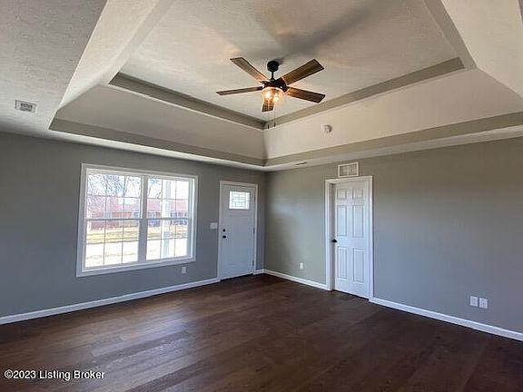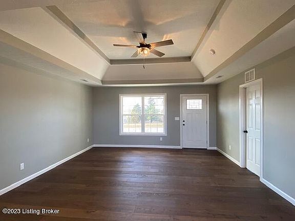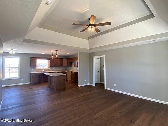 Newly Constructed & quality built bright & cheerful three bedroom two bath brick & vinyl ranch style home in town near shopping, schools, restaurants & the downtown area. Home offers desirable split floorplan with engineered hardwood & tile flooring. Lovely Living Room with decorative tray ceiling. Eat in Kitchen with center island bar & plenty of nice cabinetry. Separate Laundry Room is an added bonus. Primary suite offers decorative tray ceiling, engineered hardwood floors & walk in closet & tiled primary Bath. Two additional carpeted bedrooms and full hall Bath complete the interior of the home. Great rear patio is perfect for outdoor enjoyment. Excellent location near town & easy commute location to I65. Call today for your personal tour of this great home!