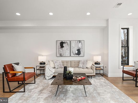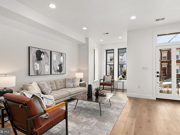 143 Thomas St NW is an impeccable showpiece that has been newly reimagined into a 5 Bedroom and 3.5 Bath home, defined by expert custom craftsmanship, premium finishes, and sophisticated design. Located in beautiful Historic Bloomingdale, Thomas Street is a quiet, wide, one-way street lined with mature trees and brick sidewalks, evoking a private feeling not often found in the heart of a city. 143 Thomas Street NW spans approximately 2,562 livable square feet and is flooded with an enviable southern exposure. French Oak 7” wide hardwood floors, custom windows, and exposed brick are some of the notable features that carry throughout the entire property. Enter the home through a beautiful custom crafted glass paneled entry door to the Main Level which is accented by a soaring 9’4” ceiling and serves as a wonderful entertaining space with an open Living/Dining extending into the gourmet Kitchen. Complete with custom cabinetry, gleaming Calacatta quartz counters, and luxury Bertazzoni appliances, the Kitchen is where thoughtful design meets timeless quality. A wide and grand custom Staircase accented by a skylight leads to the Upper Level where there are 3 Bedrooms and 2 Full Baths. A gorgeous Primary Suite with amazing ceiling height and a spa-like Bath showcases heated marble floors, a soaring custom frameless glass shower door, and a dual vanity. The Lower Level provides a fun and functional flex space encompassing 2 Bedrooms, a large Full Bath, and a Family Room with a Wet Bar. There is secure off-street Parking for 1+ vehicles with an EV charger hookup.