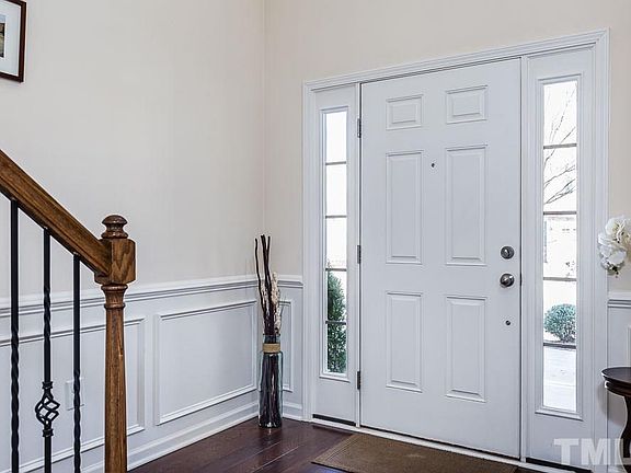 Impeccable 'Manor Home' in great Brier Creek/RTP location! Beautiful features include a 2-story foyer, hardwoods 1st floor, staircase w/ wood treads & wrought iron balusters, drop zone off garage w/ bench & hooks, electric car charging station, family room w/ corner fireplace & bookshelves, gourmet kitchen w/ granite counters, tile backsplash, gas range, under cab lights & staggered cabinets, Owner's retreat w/ trey ceiling, WIC, oversized tiled shower w/ bench & rain head shower. Fenced yard and more!