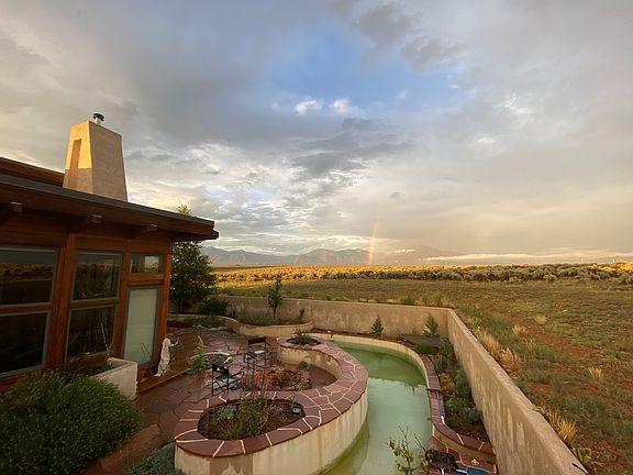 Available for mid-term rental starting August 1, this furnished 3-bedroom, 2.5-bathroom home offers a rare combination of architectural design, wellness amenities, and quiet inspiration all just 15 minutes from downtown Taos and 25 minutes from Taos Ski Valley. Perched on a private road atop the Taos mesa, the home was originally crafted by two visionary architects and is now maintained by a filmmaker and musician. The result is a luminous, thoughtfully curated space designed for creative flow, spacious living, and retreat-style restoration. Property Highlights - 3 bedrooms (or 2 bedrooms + studio/flex room) - 2.5 bathrooms, including a spa-style master bath with soaking tub and open shower - Vaulted ceilings and a passive solar layout for light-filled living - Dramatic south-facing windows, east-facing windows offering panoramic views of the Sangre de Cristo Mountains - Infrared sauna and outdoor hot tub under the stars - Chef's kitchen with quality appliances and ample storage - Sonos sound system, Apple TV, and AirPlay connectivity - Fiber-optic internet perfect for remote work or content creation - Washer/dryer, pristine clean well water, and off-street parking - Private, peaceful location with easy access to Taos Plaza, hiking trails, and ski areas Rental Terms - $3,950/month (includes water, internet, trash, and utility cap for propane) - 3-month minimum; available through December or January; open to longer term rental - Security deposit required - Well-behaved pets considered with approval - No smoking / no parties - Ideal for families, couples, or individuals seeking a longer stay with full amenities Whether you're an artist on sabbatical, a family in transition, or a remote worker looking for inspiration and tranquility, this home offers a rare opportunity to live in alignment with nature, design, and creative space. Owner pays for internet, water, trash, and most utilities (seasonal propane cap applies). - 1-month minimum stay. Available August 1 through January 1 or February 1st (flexible end date ~ owner may return for winter season; but extension / month-to-month possible after Jan / Feb 1st). - First month's rent and security deposit due at signing. - No smoking. Pets considered with approval $350 refundable pet deposit or $250 non-refundable pet fee. - Quiet, respectful use of home required; no parties or events.