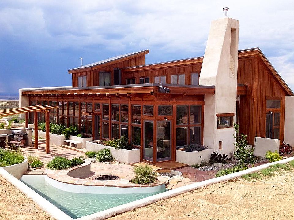 Located in the Stagecoach Hills Neighborhood Association boundaries in El Prado, this one-of-a-kind property is a must see! Meticulously designed and built by a husband and wife architectural team in 2007, this contemporary home combines the best of passive solar and low cost, efficient technology without sacrificing modern conveniences. This is the perfect property for anyone interested in unique architecture, sweeping views to the mountains, low monthly operational costs, privacy, and plenty of outdoor living. The 3,000 sq ft xeriscaped walled courtyard area includes a water feature, hot tub, and outdoor grilling and eating area. Constructed of pumice-crete walls and a solid large timber structure, the property offers consistent comfort during all seasons, high ceilings, a pleasing mixture of textures, fantastic natural light, numerous built-ins, custom cabinetry, book shelves and interior planters. The innovative grey water management system provides water for outdoor landscape irrigation. The master bedroom, with private access to the courtyard and hot tub, offers a walk-in closet and full bathroom with walk-in shower and air-spa tub. The other two bedrooms share a full bath and have plenty of closet space, as well as views to the charming courtyard and vistas further to the south. The upstairs office area offers high ceilings, uniform light, custom cabinetry, a work sink and access out onto the pro-panel roof, if ever needed. The property is located 1.5 miles from quiet Taos Regional Airport and offers easy access to Rio Grande del Norte National Monument, Manby Hot Springs, as well as to Taos Plaza, Arroyo Seco, and further on to Taos Ski Valley. Level grade road access makes getting in and out of this property a cinch.