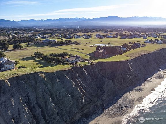 Experience extraordinary coastal living on this 2.5-acre high-bank waterfront parcel in Blue Ribbon Farms, an enclave of custom homes with access to a private grass airstrip. Set within Sequim’s renowned rain shadow, the property enjoys sunnier, drier weather and sweeping views of the Strait of Juan de Fuca, Mt. Baker, the San Juan Islands, Vancouver Island, and the Olympic Mountains. Eagles, hawks, seabirds, deer, and black-tailed rabbits are regular visitors, adding to the natural beauty and quiet rhythm of the setting. Outdoor recreation is exceptional with the Dungeness Recreation Area and Dungeness National Wildlife Refuge just moments away—offering miles of bluff-top trails, protected habitat, & the iconic walk along the Dungeness Spit to the lighthouse, a favorite local experience treasured by residents and visitors alike. The community’s private grass airstrip provides a rare amenity for aviation enthusiasts, blending naturally into the landscape. Much of the groundwork for building is complete: a preliminary stormwater plan, 2019 Geotech with 2024 county review confirming a 150' bluff setback, soils & site registration, and a pending 3-bedroom septic permit valid through March 2027. The property is served by PUD power and the Cascadia community water system, and CCRs help protect the character of this desirable waterfront community. A rare opportunity to build where sunshine, scenery, & coastal quiet come together in a truly exceptional setting.