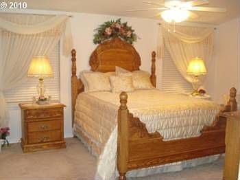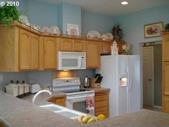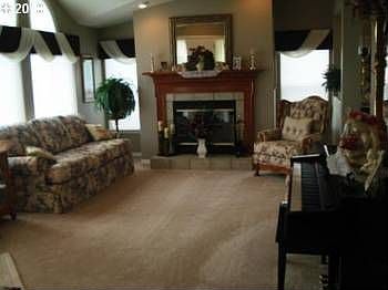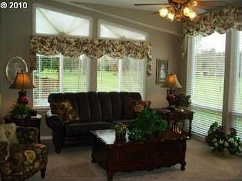Gorgeous home with views of the golf course! Comfortable 2005 manufactured with many upgrades like Vaulted ceilings, chandelier and fireplace. Master bedroom has a large walk-in closet and full bathroom with shower and soaking tub. Custom built-in cabinets in the kitchen, laundry room and garage. Beautifully landscaped yard with sprinklers and covered patio.