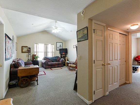 Penthouse condo with Vaulted Ceilings in a great location less than a minute to the Wal-Mart Super Center! The Split-Bedroom floor plan features a comfortable Living area right off of Kitchen, and there is a private deck with a storage closet and nice view of the hills as well. Both bedrooms are nice size and the Master Suite features a Walk-In closet. Kitchen offers an Eat-In Breakfast area with a view. Full size Washer and Dryer are included in the price, as well as a Refrigerator. Reasonable COA fees include building insurance and maintenance, trash service, snow removal and swimming pool. Only one flight up to enjoy the privacy of a Penthouse, corner unit, and less than 3 minutes to 65 Highway, too!