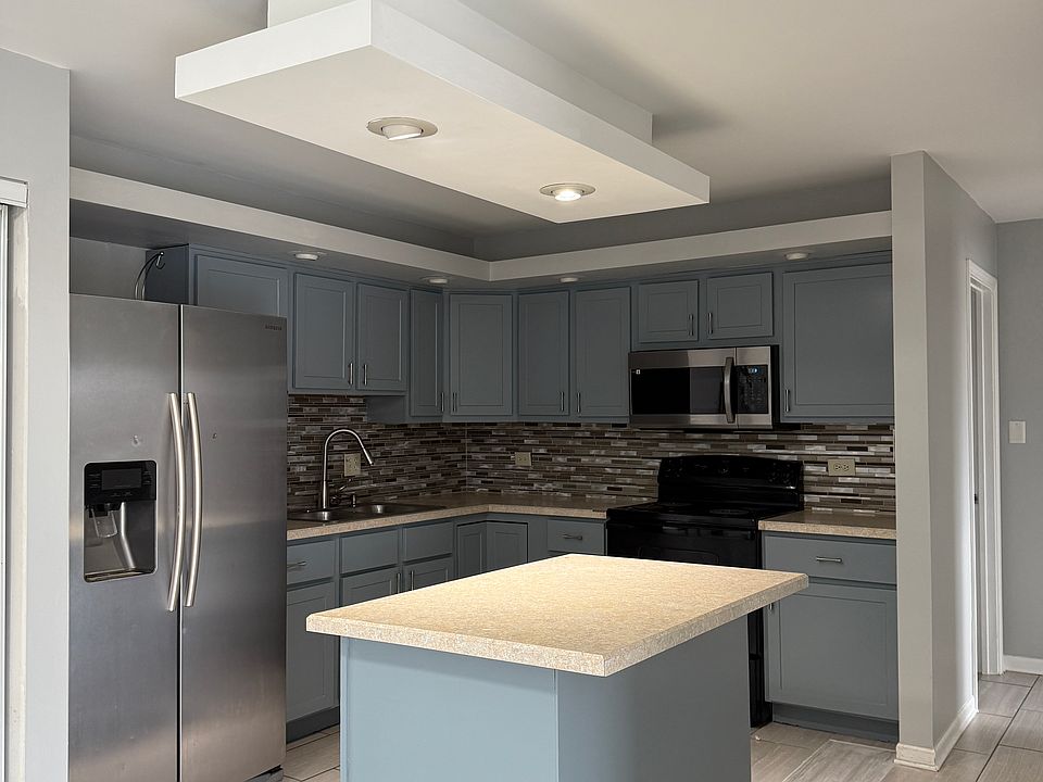 Modern kitchen with island & stainless appliances