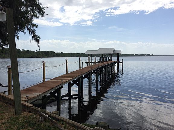 FANTASTIC, UPDATED RIVERFRONT HOME WITH A DOCK AND A LIFT. Located on a perfect lot overlooking the St Johns River, This beautiful home features an expansive patio with a outdoor grill, 3 bedrooms (2 are waterfront), 2 baths, amazing views from the main living area, hardwood an tile flooring throughout, an updated kitchen with soft close drawers, built in oven, crown molding and so much more. Don't overlook the fully fenced and gated yard, the garage, the 2 storage sheds, the cell phone controlled irrigation system plus all of the other significant upgrades. Nearly an acre lot with great neighbors and even better views!