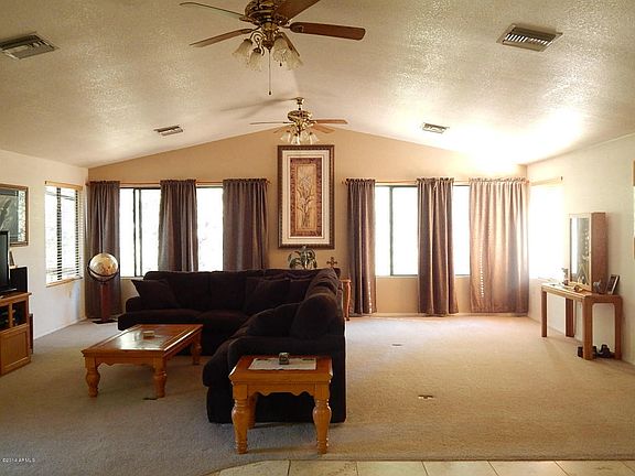Rare horse property has 1.34 acres, small mini barn and secondary corral. This two story home has slump block and slab foundation. Beautiful open floor plan has huge living area that opens to dining area and kitchen. One large bedroom, bathroom and office space on upper level and two bedrooms with huge walk-in closets, large family room or game room and full bath on first floor. Laundry room is off the two car garage. Tranquil rock waterfall outside, green grass, private well, tack shed, workshop, hot tub and backyard privacy fence are part of this stunning property.