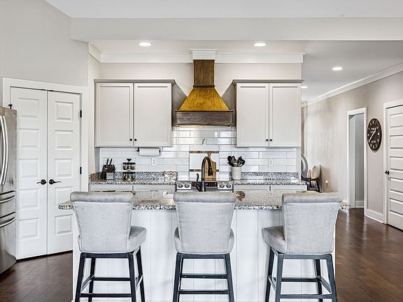 Step inside to find an inviting open floor plan filled with natural light. The main level features plantation shutters, built-in lockers and drop zone, and a gorgeous kitchen complete with farmhouse sink, oversized island, custom wood range hood, and abundant cabinetry. Every chef will love preparing meals in this thoughtfully designed space. The Great Room, open to the kitchen and breakfast area, creates the perfect gathering spot for family and friends.