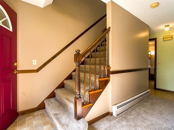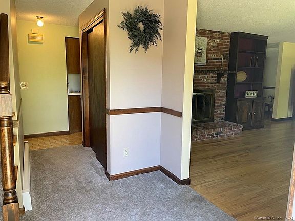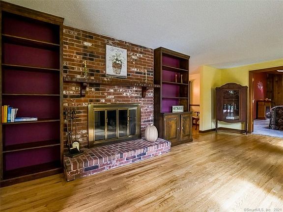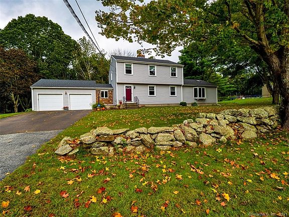 Picturesque 4 bedroom center hall Colonial home in the heart of Hebron offering expansive floor plan and neutral decor. Sun-filled living room with hardwood flooring, fireplace, built in bookshelves and french doors leading to rustic family room with wet bar, vaulted ceiling, skylights, and built-in cabinetry. First first floor bedroom situated off family room with full bath is ideal for in-law setup or work from home space. Fully applianced and tiled eat-in kitchen with adjacent formal dining room with hardwood floors look out onto the serene backyard. Convenient first floor mudroom and half bath laundry room when you come in from the garage. Upper level offers hardwood flooring and master suite with full bathroom, 2 other good-sized bedrooms and additional full bath. Stone walls and brook enhance the natural landscape and the lightly treed yard is great space for gardening, bird watching, entertaining and simply relaxing on the covered patio. Backyard includes a basketball court and a high quality Johnny Weismuller 24 ft above ground pool with newer liner and attached deck. Vinyl siding, replacement windows, storm/screen doors, and roof were done in 2010. Dog fence was installed in 2020. Well pump 2014, new well tank in 2021 and home is ready for a generator. ADT security system in place. Home was connected to city sewer in 1994. Pool table and home gym included in purchase. Start packing and be in before the holidays. A pleasure to tour and meticulously kept.