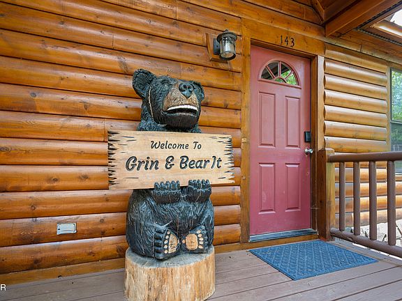 Welcome to Grin and Bear It. This amazing three bedroom, two and a half bath property sleeps 8 comfortably. The cabin has been recently renovated with new kitchen finishes, a sanded and refinished floor, a new hot water heater, and a new metal roof. Once renovations were completed, the cabin was fully furnished and tastefully decorated. Rental Estimates put this property in the 80K plus gross range. The property is located within the White Oak Lodge & Resort community and is accessed by flat paved roads. The property has off-street parking for 2 vehicles. Upon entering the cabin, you are greeted with a one and a half story vaulted ceiling in the main living space. There is a cozy gas fireplace in the living room with ample seating for entertaining and relaxing. Also in the open concept living space, is a dedicated dining area and the fully equipped kitchen with an oversized island for additional seating. Just outside the kitchen is a screened in porch with privacy screen around the hot tub for relaxing year-round. The main floor also has a dedicated workspace, a half bathroom with stacked washer and dryer, and a master bedroom with ensuite bathroom. The ensuite bathroom has a custom tile walk in shower. Upstairs has an oversized full bath with a shower/tub combination and dual vanities. On either end of the short hall is a bedroom; one has a king sized bed, the other has a twin over full bunk bed as well as a queen sized bed. The multi-bed bedroom is a perfect space for the younger ones to hang out with plenty of room to play, a large television, and a multi-cade game system. The upstairs bedrooms have vaulted ceilings and beautifully maintained exposed beams. This is not a typical wooden interior cabin. Care was taken in the lighting and window placement to keep this interior light and bright.