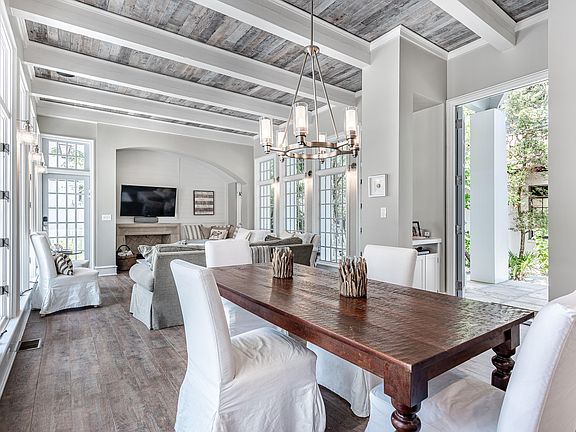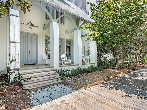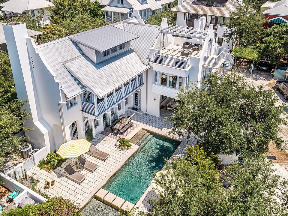 An extraordinary 5BR/4.5BA property offering everything needed to enjoy the idyllic Rosemary Beach lifestyle to the fullest from a luxe outdoor tropical oasis to a location steps from Barrett Square with shopping, dining and entertainment. Impeccably renovated in 2017 by Heritage Builders, special features include a gourmet chef's kitchen with commercial grade Kitchen Aid appliances and a large island, beautiful wood ceiling accents throughout, accordion doors that unite the indoor and outdoor living spaces and a rooftop patio with incredible sunset views. Outdoor living is at a premium with a private swimming pool, a summer kitchen, an outdoor fireplace and a lounge area with TV.