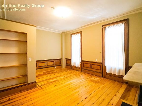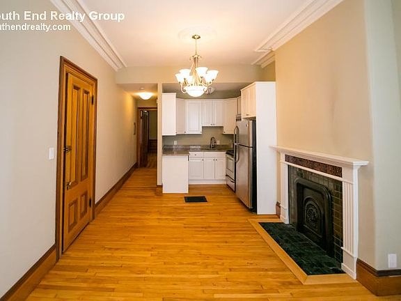 Lovely parlor level 1 bed in prime South End location! Hardwood floors and high ceilings through out. Renovated kitchen with granite counters and stainless steel appliances opens to sunny living room with large bow windows and marble fireplace. Extremely spacious bedroom with built in shelves, fireplace and original wainscoting. Common laundry and common back patio too! A true South End gem! NO BROKER FEE