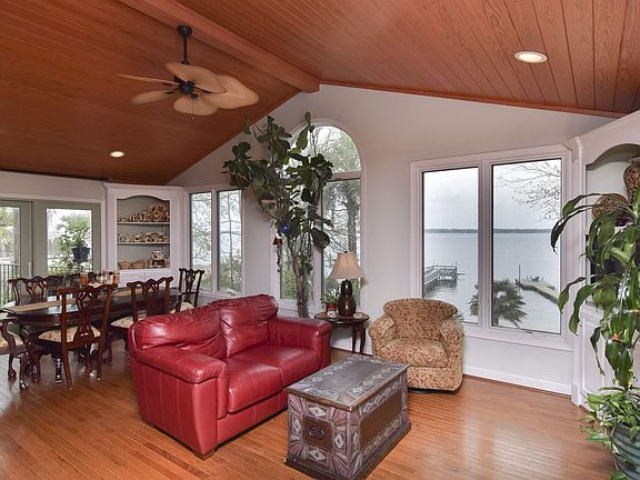 - Ceiling Fan(s), Wet Bar, Recessed Lighting, Cathedral Ceiling(s), Bookcases, Sun Room, Media Room, Ceiling Fan, Floors-Hardwood, Molding
