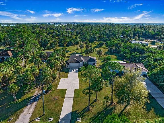 This is a 3 bedroom, 2 bath McKinley Model by American Dream Builders sitting 150 feet from the road for privacy. It has new kitchen cabinets with stainless steel appliances and granite counter tops. The master bathroom is completely renovated with a walk-in shower. The house is freshly painted and ready for you to move right in! Enjoy the light and bright house while you watch the sunrise from the screened lanai. The cleared backyard is spacious for kids to play and has room for a pool. The master bedroom has his and her closets as well as sliders that open onto the lanai. There is ample storage here with organizers in all closets and laundry room with a sink. The roof and A/C are only 4 years old.
