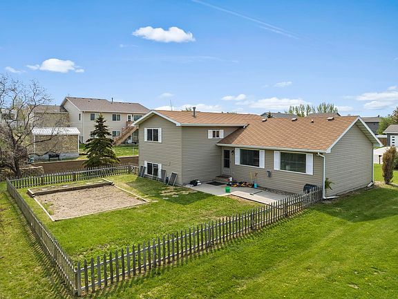 Lake Property right in Minot! There's so much to enjoy about this home on the water, beautiful views, gorgeous sunsets, so much wild life, paddle boating, ice skating and more! "It's a great neighborhood with good neighbors, I wish I could take it all with me says the current owners." Super nice fenced yard with patio, shed, and some trees including a producing apple tree! Beautiful wood floors welcome you inside the front door, along with spacious open concept living room, dining room, and kitchen. Gas fireplace keeps you cozy while sipping your coffee and gazing out on the water.  Boasting four bedrooms, and three bathrooms, including a nice master bedroom en-suite with walk in closet and bathroom. Enjoy a large family room as you enter the daylight lower level, with a separate laundry room, a larger lower bedroom with walk in closet, and bathroom close by. There's a convenient, extra large, storage space with easy access in the lower level also. The attached insulated 24 X 24 double garage is very convenient all year round. Ask your favorite Realtor to set up a showing for you today!