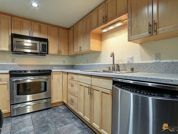 ?Private end unit condo in the heart of downtown Anchorage that features 1 car garage space, mountain views, new private deck, new mini split air conditioner, on demand water system, baseboard heat, updated electric throughout, crown molding, new windows that have been tinted for additional privacy, new window treatments, new paint, newer stainless kitchen appliances. Pets welcome!!