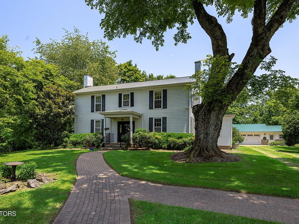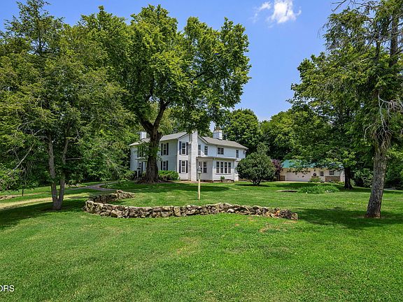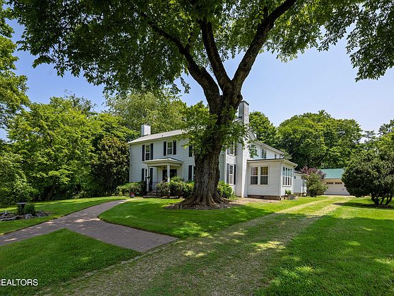 Own a Piece of Maryville History — The Rorex Homestead Nestled on 1.54 serene, park-like acres in the prestigious Brookemeade at River Shoals, this extraordinary residence is believed to be one of the oldest homes in Blount County. Constructed prior to 1850 by the Rorex family, the home once anchored a 3,000-acre sheep farm and has since become a cherished piece of Maryville's heritage. Steeped in history and thoughtfully modernized, this 4-bedroom, 3-bathroom home masterfully blends historic charm with today's comforts. A significant renovation just 12 years ago respected the original craftsmanship while introducing updated systems and stunning enhancements throughout. Step inside to a grand foyer with the charming historic staircase and be transported to another era. The parlor, under soaring 9.5-foot ceilings, features a brick fireplace and original built-in bookcase, creating a cozy yet elegant space. The delightful kitchen, situated with views of the private backyard, is well appointed with stainless steel appliances, granite countertops, a center island, cabinets extending to the wood ceiling, and reclaimed barnwood floors. A stone wood-burning fireplace and original chestnut hutch add irreplaceable character.