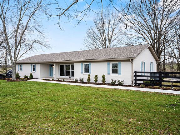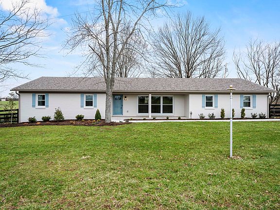 The Unicorn!!! Modernized ranch with Southern charm nestled on 5 acres of horse country heaven! This home has been updated to give you all the modern high end finishes but still holds the warmth of the Bluegrass! Light and bright with huge picture windows in the living room that shares open space with the chef's dream kitchen. The primary suite is situated privately in one wing of the house, while the other bedrooms are on the other side. Primary bath is huge with an enormous tiled shower, two vanities and walk in closet. The three other bedrooms all have lots of light and large closets. Hall bath has large soaker tub and third bath is ensuite. Large flat area around the home and then gentle rolling pastures that are in the 5 acre lot. There is even a 2 stall animal shelter/barn ready for your livestock. Full unfinished walkout basement with one car garage. It's the best of both worlds...enough space to be in the country but close enough to Versailles and Lexington!