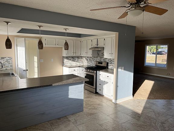 3 bedroom, 3 bath, 3 car garage, laundry room, fireplace. Mixture of tile and carpet. This beautiful remodeled home is available May 1, 2022. All three bedrooms are larger in size. Home sets on an acre parcel, with another house to the rear, currently occupied by quiet tenants. Backyard is fenced and private. Plenty of room to park a trailer, RV, etc. Renter responsible for all utilities. No smoking inside the residence. Well behaved pets will be considered with additional deposit. Plenty of room for parking.