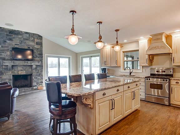 Offer accepted -Accepting back up offers. Over 182 FEET OF LAKE FRONTAGE on custom Witmer Lake giving you access to 3 fishing lakes and 2 ski lakes. A concrete seawall surrounds this property, and the bonus room could be transferred back into a garage. This home offers 3 custom bedrooms, a custom kitchen with soft close doors and draws, open concept living with panoramic views of Witmer Lake in all it's glory. The floor to ceiling gas fireplace will add warmth to any room as you sit back watching the snow fall during the winter dreaming about the upcoming boating season! The lakefront master bedroom offers incredible views of the lake with sunsets from the bed, and sunrises that will take your breath away. This home is truly beautiful, and the seller has already nearly moved out so it is easy to show. Sit back and enjoy the view of the lake from nearly every room in this update masterpiece.
