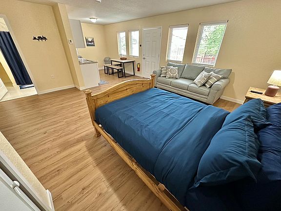 About this space Relax in our large hot tub, have peace of mind staying in our meticulously cleaned rooms, and enjoy the large board game collections in our community room. We are located conveniently in the middle of Colorado Springs, only a short drive from top tourist attractions like Garden of the Gods, the shops at Manitou Springs, the Pikes Peak Cog Railway, & much more. We are also within walking distance (0.3 miles) from Prospect Lake containing two large playgrounds, a free swim beach, & walking paths. The space Welcome to our comfortable and clean cottages nestled in the beautiful city of Colorado Springs, Colorado. This open and welcoming vacation rental is the perfect home away from home for your visit to this vibrant and picturesque city. Located in the heart of Colorado Springs, our cottage offers convenient access to all the popular attractions and amenities that this area has to offer. Whether you're here to explore the stunning natural beauty of the Rocky Mountains, visit the famous Garden of the Gods or Pikes Peak, or experience the rich history and culture of Old Colorado CIty & Manitou Springs, our cottage is the ideal base for your adventures. Upon entering our cottage, you will be greeted by a warm and inviting studio living space. The open-concept layout creates a sense of spaciousness, while still maintaining a cozy and intimate atmosphere. The living room features brand new and comfortable seating where you can relax and unwind after a long day of exploring. The fully equipped kitchen provides everything you need to prepare delicious meals during your stay to help reduce costs from being forced to eat out each meal. From modern appliances to seating for 4, you'll have all the tools necessary to whip up your favorite dishes. Enjoy your meals at the dining table, which offers seating for all guests. Our cottage is designed with your comfort in mind. Each room is tastefully decorated and furnished with plush beds and high-quality linens to ensure a restful night's sleep. The thoughtful touches throughout the cottage, will have you feeling right at home during your stay. Outside, you'll find a private hot tub shared only with our cottage guests, where you can enjoy your morning, relaxing in the warm water, drinking coffee, and soaking up the sunshine. As our guest of the Cottages, you'll have also access to a range of amenities designed to enhance your stay. These include our community room filled with multiple sets of washer and dryers for your use, microwaves, a large selection of children's books and toys, and an impressive collection of board games. Our cottages are also uniquely situated 0.3 miles away from a popular lake in Colorado Springs named Memorial Lake. With multiple playgrounds for children and families to enjoy, there are additional a couple miles or pathways and trails surrounding the scenic lake, with gorgeous views of the Rocky Mountains in the distance. It makes for the perfect location to watch the sunset and see the colors of the sky change. In terms of location, our Cottages are conveniently situated near popular attractions such as Pikes Peak, Manitou Springs, the United States Air Force Academy, Garden of the Gods, the U.S. Olympic Training Center, Cave of the Winds, The Manitou Cliff Dwellings, and so much more. You'll also find a variety of restaurants, shops, and entertainment options just a short distance away. Whether you're seeking outdoor adventures or cultural experiences, Colorado Springs has something for everyone. During your stay, our dedicated and friendly team will be available to assist you with any questions or concerns you may have. We strive to provide exceptional hospitality and ensure that your visit to Colorado Springs is truly memorable. Book your stay at our Cottages in Colorado Springs today and experience the perfect blend of comfort, convenience, and natural beauty. We look forward to welcoming you! Guest access Access to the home is through a lockbox that is installed next to the door. In case there are any issues with that at all, we have a backup lockbox mounted on the fence across from the community center. These back up keys are for emergency use only. Please let us know if you use them and replace them once you are finished using it. Our guests will have access to the entire property including the community 10 person hot tub, the outdoor picnic/BBQ area, the community game room with dozens of board games, and our laundry room. You will have exclusive, private use to your cottage. Other things to note There are neighboring units so there is potential for noise Rental is fully furnished No smoking in the home