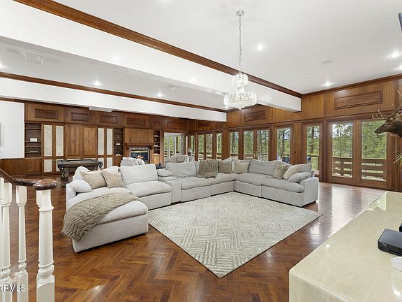 A PERFECT BALANCE of stately design and inviting warmth, this RARE PROPERTY offers unparalleled PRIVACY, SERENE FOREST VIEWS, and direct access to nature, making it the ULTIMATE NORTHERN ARIZONA RETREAT—a must-see experience for those seeking something TRULY EXTRAORDINARY. Tucked in a secluded corner of Munds Park, this TRADITIONAL GRAND LODGE-STYLE ESTATE showcases timeless craftsmanship and refined mountain elegance on 3.21 FORESTED ACRES. Neighboring the COCONINO NATIONAL FOREST and Munds Canyon, this 7,142 SQ FT GATED RETREAT blends classic American estate architecture with modern LUXURY. Inside, soaring 20-FT CEILINGS and rich herringbone WOOD FLOORS set the tone in the grand great room, accented by DRAMATIC CHANDELIERS, intricate custom millwork, ENCLOSED VERANDAH & a carved WET BAR