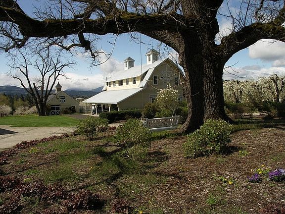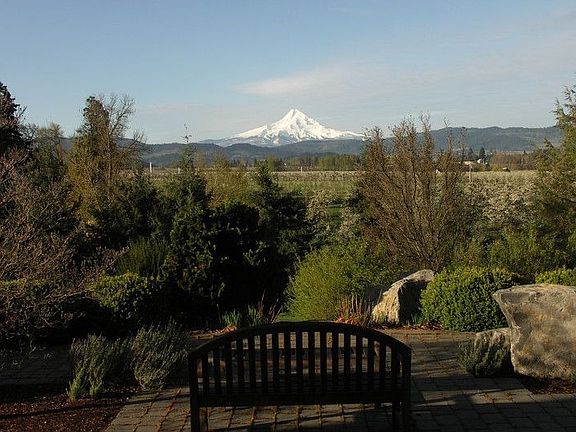 Private 10 acre Retreat with 6300sqft Architecturally Designed home! Stunning Mt. Hood & HR Valley views. Beautifully built with Spectacular Family room & gourmet kitchen. Romantic master suite. 5 bedrooms/ 5 baths. Terrific games room. 2 Amazing Barns, expansive patios, Gorgeous Gazebo & built in Hot Tub. 5 acres in pears with resident manager. Surprise after surprise & 5 minutes to HR town!