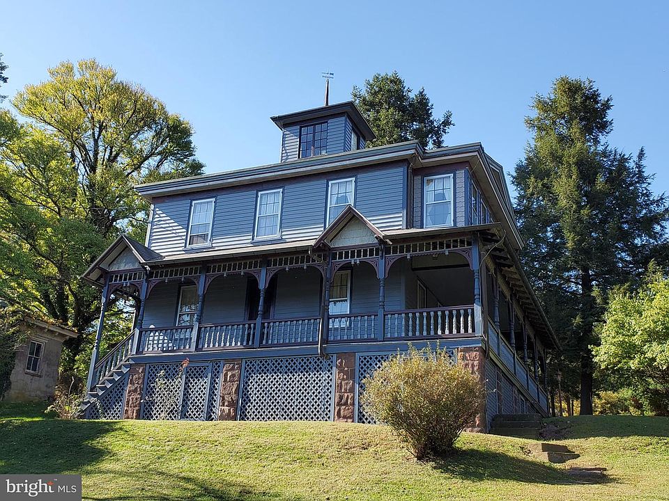 Stately Victorian style home with 2 sided wrap around porch, located on a peaceful one acre lot. This home retains its old world charm and ornate features of bygone years. Solid wood doors with original hardware. The main level features a formal living room, parlor, dining room and kitchen. The parlor and dining room feature ornamental fireplace mantle and frame. Kitchen includes white appliances and cabinets . There is also a large enclosed rear porch with butlers pantry. The upper level features 4 bedrooms, 2 with exposed natural wood floors, and full bathroom with tub/shower and wainscot wall treatment. The spiral staircase on 2nd floor leads to a unique cupola/observation room surrounded by windows with picturesque views of the countryside. Another very distinct feature is a wine cellar/cold storage room accessed from the basement. Large usable rear yard is great for gardens and recreation. Wrought iron fence with gate, stone wall and ornate exterior trim work add character to home. The property is being sold "as is", the on-site septic system needs to be replaced, cash transactions only.